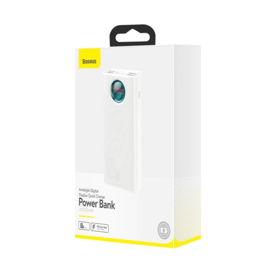Baseus Amblight powerbanka s digitálním displejem QC 30000mAh Overseas Edition + kabel Type-C/Type-C 100W 1m, bílá