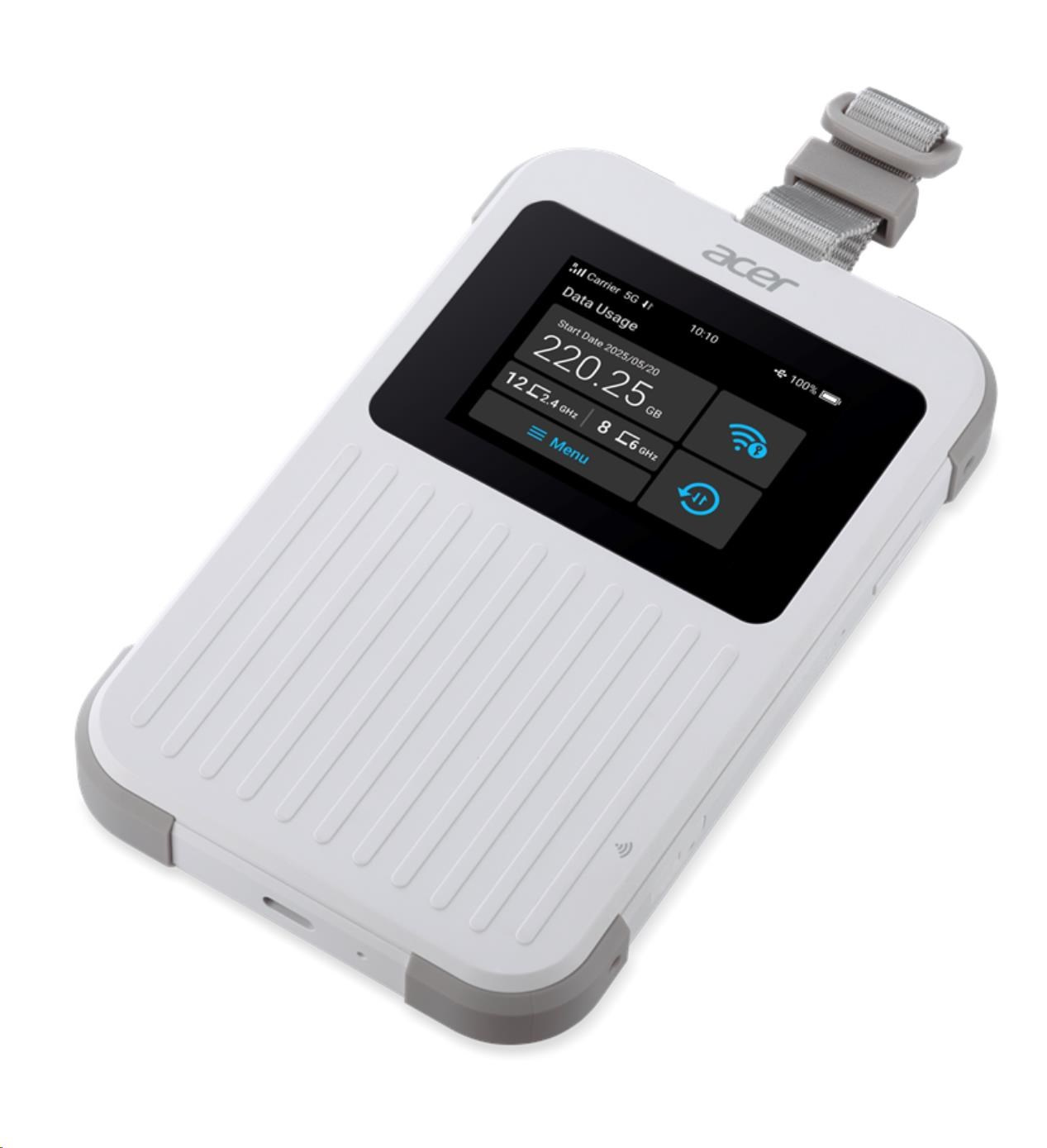 BAZAR - ACER Router Connect Enduro M6E,20GB SIMO,5G,LTE,2.4" touch display,Wifi,NFC,USB-C,2.4GHz,8000mAh,White-Rozbaleno