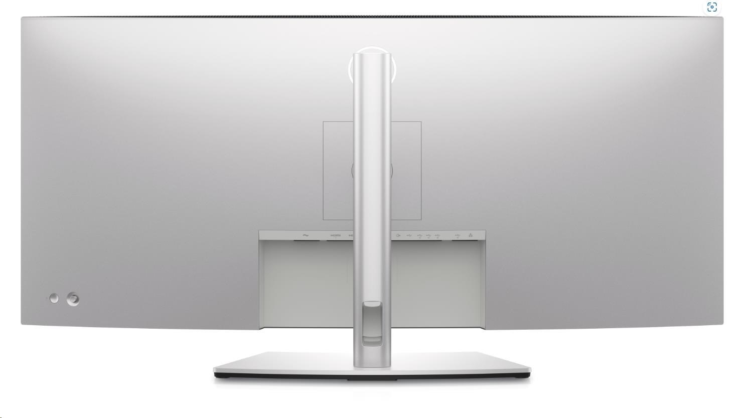 | 1. Security lock slot (based on Kensington Security Slot™) 2. Power connector 3. 2x HDMI 2.1 4. DisplayPort 1.4 5. USB Type-C upstream port (video and data). (Alternate mode with DisplayPort 1.4, Power Delivery up to 90W) 6. Audio line-out port 7. USB Type-C upstream port (data only, 10 Gbps, USB 3.2 Gen 2) 8. 4x USB Type-A downstream ports (SuperSpeed USB 10 Gbps, USB 3.2 Gen 2) 9. RJ45 connector 10. Stand lock 11. USB Type-A downstream port (SuperSpeed USB 10 Gbps, USB 3.2 Gen 2) with BC1.2 charging capability at 2A (max) 12. 2x USB-C downstream ports (SuperSpeed USB 10 Gbps, USB 3.2 Gen 2) with charging capability at 15W (max) 13. Speakers 14. Power On/Off button 15. Joystick |