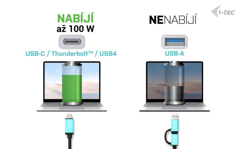 V případě, že je dokovací stanice připojena přes USB 3.0, nabíjení notebooků a tabletů nepodporuje