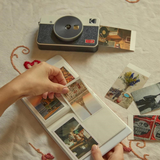 Kompaktní zařízení, které spojuje funkci instantního fotoaparátu a fototiskárny pro fotografie o velikosti kreditní karty 2,1 × 3,4 palce. Fotografie můžete pořídit a ihned vytisknout vestavěným fotoaparátem, nebo připojit telefon přes Bluetooth a tisknout snímky z galerie – stejně jako u řady kompaktních fototiskáren KODAK.