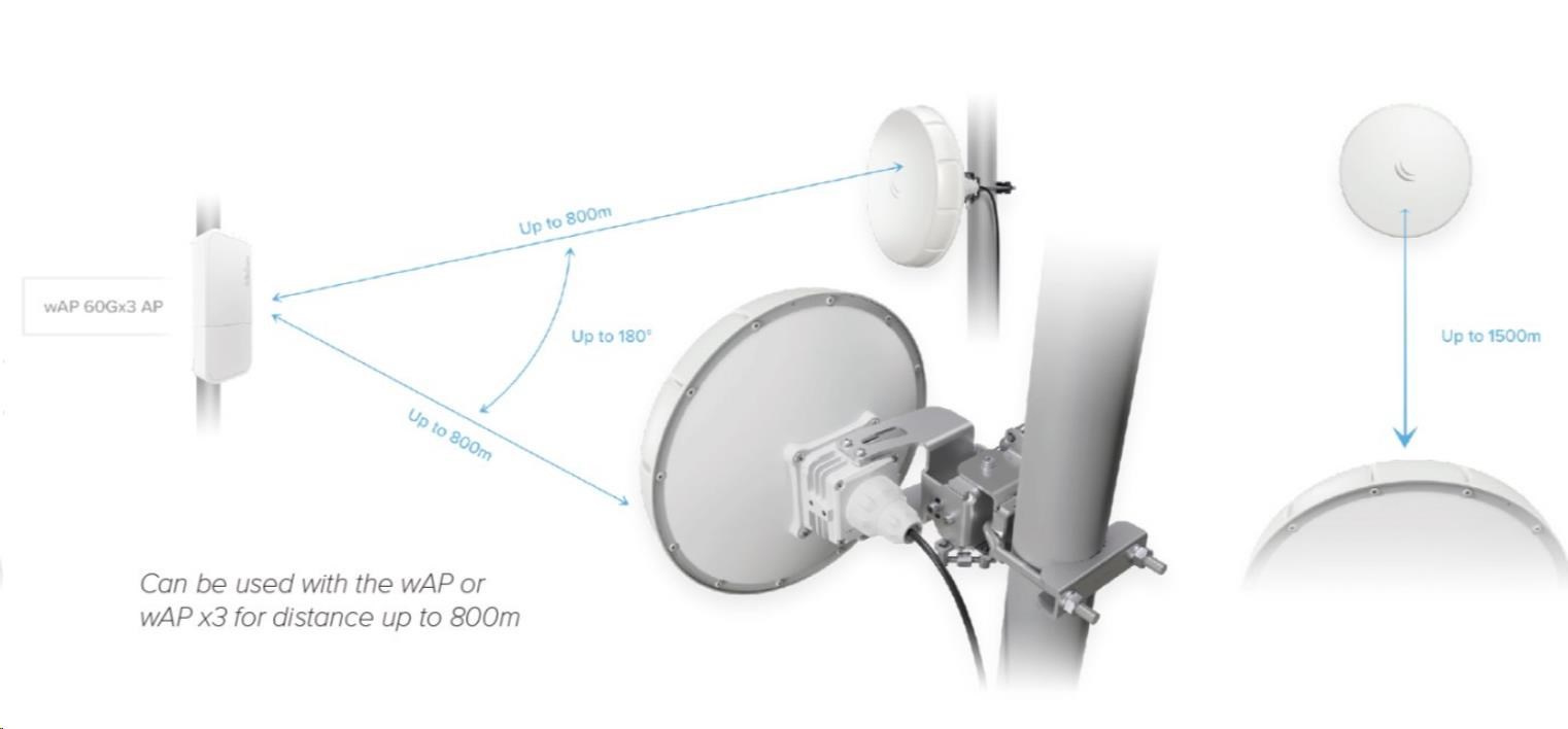 nRAYG-60adpair je další revoluční novinka v MikroTik sortimentu, která osloví každého, kdo vytváří spoje na středně dlouhé vzdálenosti. Jedná se totiž o ptp řešení v pásmu 60GHz pracující se standardem 802.11ad, který v reálném provozu umožňuje propustnost až 1000Mbps Full Duplex na vzdálenost až 1500m. MikroTik tvrdí, že má tato jedotka stejný zisk jako jednotky LHG (RBLHGG-60ad) ale s menší velikostí a radomem jako bonus, který uvítají všichni ISP za nepříznivého počasí. RouterBoard je jako vždy vybaven velmi oblíbeným operačním systémem RouterOS s L3 licencí. Pro upgrade jednotky na AP je potřeba dokoupit pouze L4 licenci.