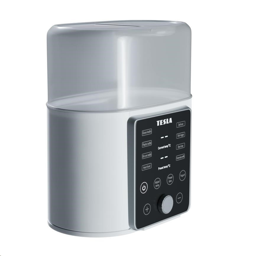 Tesla Multi Sterilizer MS 100 je multifunkční přístroj, který nabízí 7 programů a pomůže v mnoha běžných situacích. Nestíháte? Vytáhněte pokrm z mrazáku, sterilizátor jej rozmrazí. Něco se přihodilo a nemůžete hned servírovat? Nevadí. Teplotu udrží až několik hodin. Dítě už spí a máte vše vysterilizováno? Uvařte si v něm ještě vajíčka k večeři. Nemáte co následující den snídat? Tesla Multi Sterilizer MS 100 vám připraví výživný domácí jogurt.