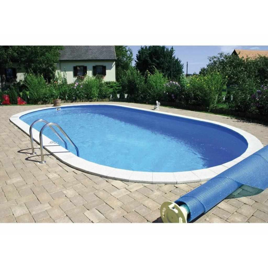 Tento bazén oválného tvaru má rozměry 600 x 320 x 150 cm, vnější barva ocelové stěny je bílá.