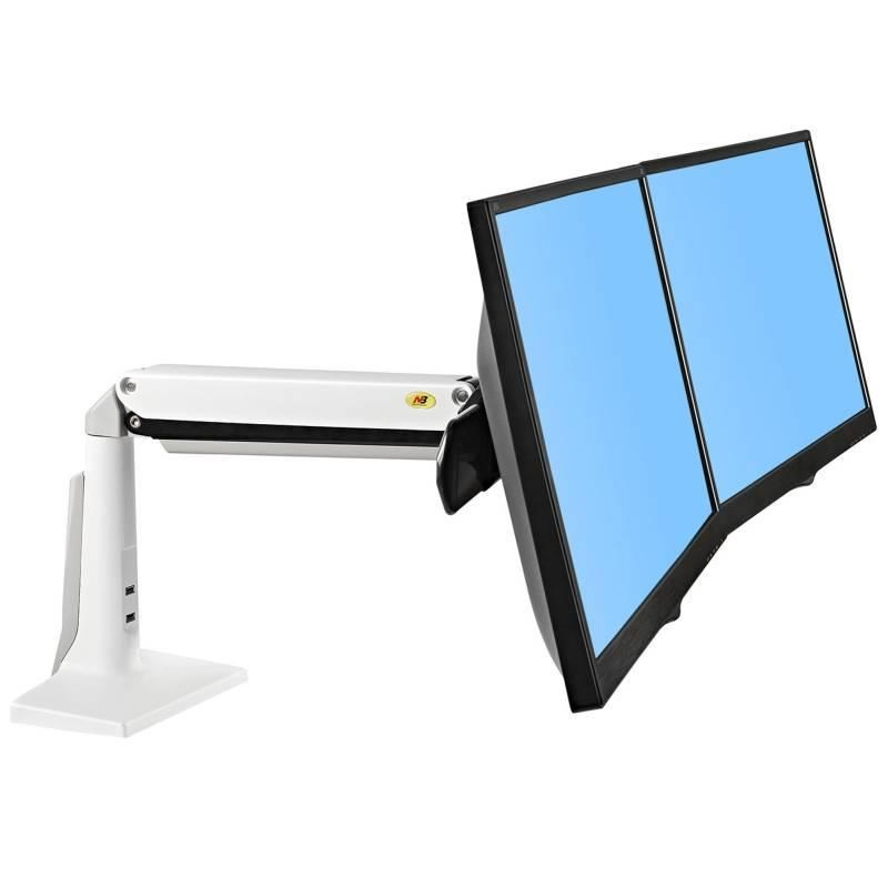 Bílý stolní držák na dva monitory NB F27W