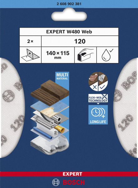 Bosch EXPERT W480 Web 1/4 ruční brusná síť, 115 × 140 mm, G120