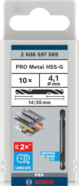 Bosch oboustranný vrták do kovu PRO Metal HSS-G, 4,1 × 14 × 55 mm, 10 ks