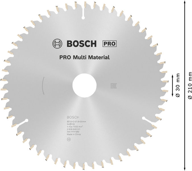 Bosch pilový kotouč PRO Multi Material pro okružní pilu, 210 × 2,4 × 30 mm