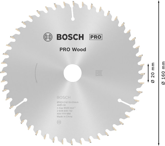 Bosch pilový kotouč PRO Wood pro okružní pilu, 160 × 2,6 × 20 mm, T48