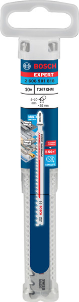Vydrží až 50× déle než pilový plátek Bosch T345XF - Někdy potřebujete plátek, na který se můžete spolehnout. Pilový plátek, který si poradí se stavebním dřevem, ve kterém je kov. Nebo s dřevovláknitými deskami. Nebo s tvrdými šrouby. Pilový plátek EXPERT Multi Material thick and thin T367XHM opravdu dokáže pracovat s různými materiály a řeže ještě dlouho poté, co jiné pilové plátky selžou. Extrémní odolnost plátku EXPERT Multi Material thick and thin T367XHM zajišťuje karbidové technologie Bosch Carbide Technology – pokročilá struktura zubů se vyrábí pokročilými postupy a obsahuje ten nejtvrdší kov. Navíc má plátek konstrukci zubů optimalizovanou pro sílu a rychlost. Progresivní rozteč zubů navíc řeže materiál všech tlouštěk agresivně, ale bez lámání. Pilový plátek Bosch EXPERT Multi Material thick and thin T367XHM dokáže řezat houževnaté dřevěné materiály s kovovými prvky i další odolné konstrukční materiály. Je to pilový plátek, na který je spolehnutí. Kompatibilní se všemi pilami s upínáním do T.