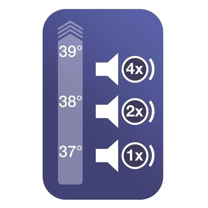 Zvuková signalizace pomáhá interpretovat naměřenou hodnotu teploty. Počet zvukových pípnutí signalizuje normální (1 pípnutí), zvýšenou (2 pípnutí) teplotu a horečku (4 pípnutí).