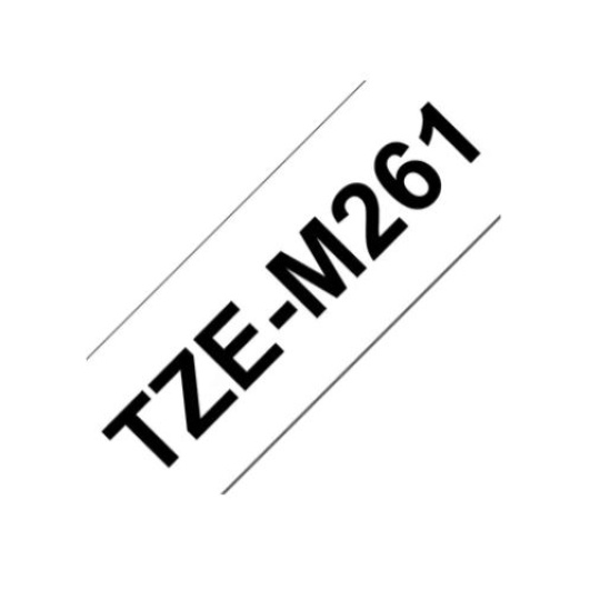 Brother TZe-M261 matná laminovaná páska – černý tisk na matném bílém podkladu, šířka 36 mm.