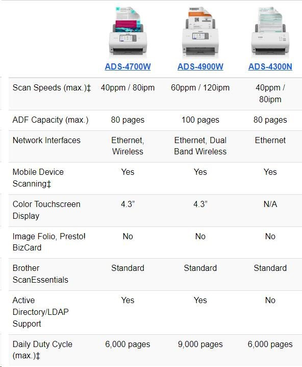 Software supplied - Windows Windows 10 (Home|Pro|Education|Enterprise)(32 or 64 bit editions), Windows 8.1(32 or 64 bit editions), Windows 7 SP1 (32 or 64 bit editions), Windows Server 2019, 2016, 2012R2, 2012. Brother iPrint&Scan for Desktop, Kofax PaperPort, Kofax Power PDF Standard v3, Remote Setup, Brother ScanEssentials Lite. TWAIN, WIA. Newsoft Presto! Bizcard 6, Newsoft Image Folio. BRAdmin Light, Brother BRAdmin Professional 4