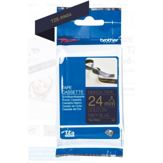 Vložte svou osobnost do karet a dárků použitím pásky Brother TZe-RN54 se zlatým tiskem na tmavě modrém podkladu. Ať už se jedná o zvláštní příležitost, nebo si jen chcete přidat něco navíc jako vklad své osoby, tyto luxusní textilní stuhy vám poskytují nejlepší způsob, jak ozdobit dárky. Klíčové vlastnosti Šířka 24 mm, délka 4 m