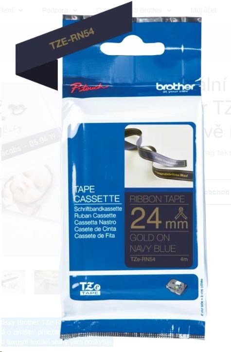 Vložte svou osobnost do karet a dárků použitím pásky Brother TZe-RN54 se zlatým tiskem na tmavě modrém podkladu. Ať už se jedná o zvláštní příležitost, nebo si jen chcete přidat něco navíc jako vklad své osoby, tyto luxusní textilní stuhy vám poskytují nejlepší způsob, jak ozdobit dárky. Klíčové vlastnosti Šířka 24 mm, délka 4 m