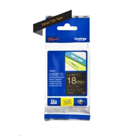 BROTHER TZE344 - kazeta TZ šířky 18mm, laminovaná TZE-344, černá / zlaté písmo - gold