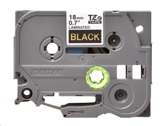 BROTHER kazeta TZ šířky 18mm, laminovaná TZE-344, černá / zlatá.