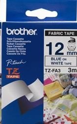 BROTHER TZEFA3 Labelling Supplies, 12mm BLUE ON WHITE FABRIC TAPE.