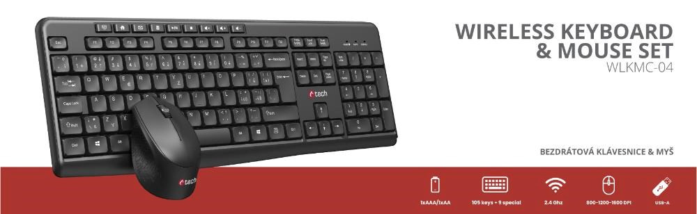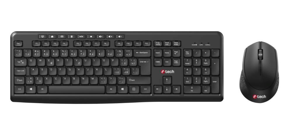 C-TECH klávesnice s myší WLKMC-04, Bezdrátový set 2.4GHz, CZ, Černá