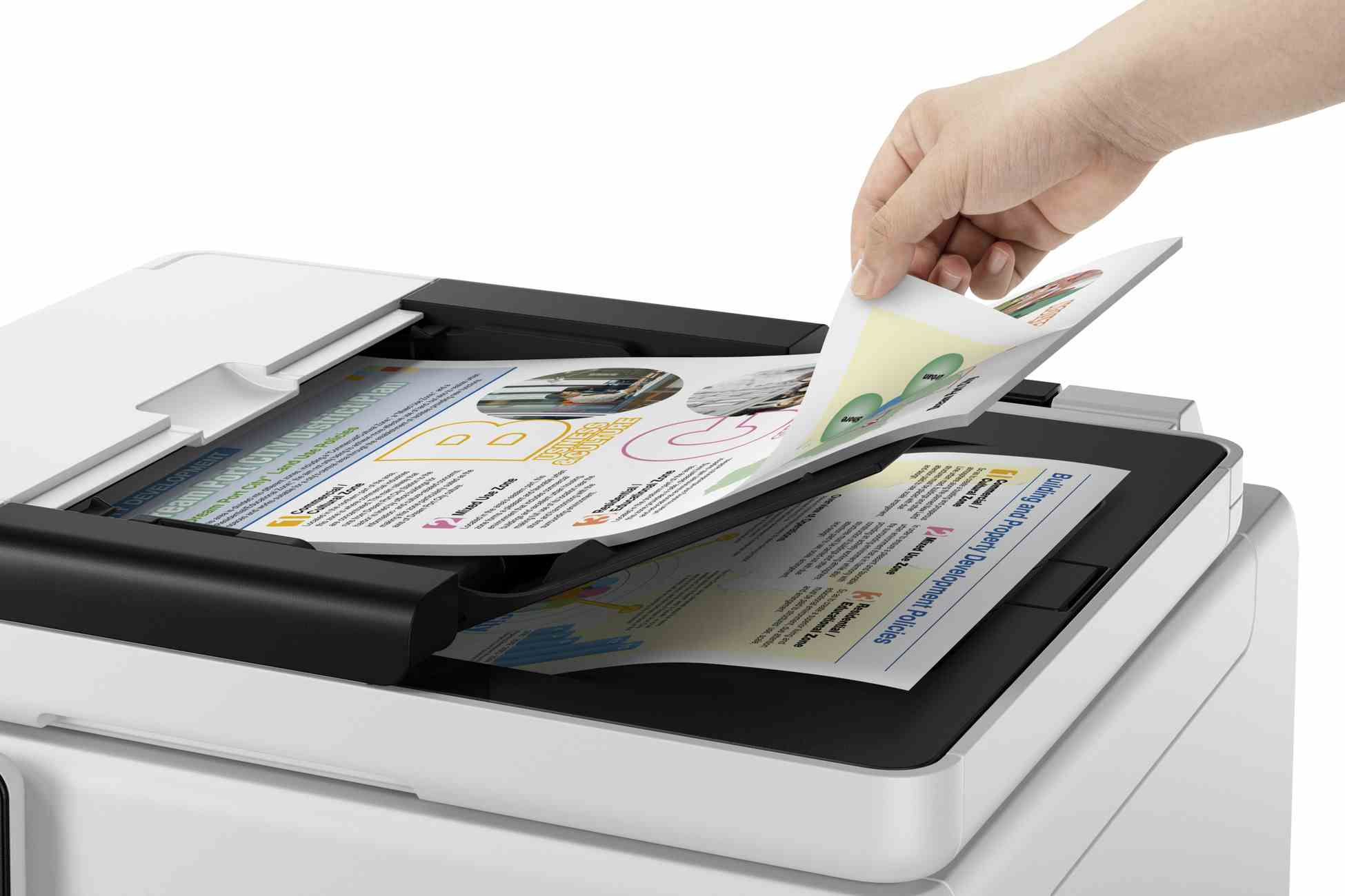 S automatickým podavačem dokumentů na 50 listů s jednoprůchodovým oboustranným skenováním, výklopnou, 6,9cm barevnou dotykovou obrazovkou a zásobníkem papíru až na 600 listů bude práce při plnění náročných termínů lehčí. Zpracování různých médií – dokonce i tisk bannerů o délce až 1,2 m.