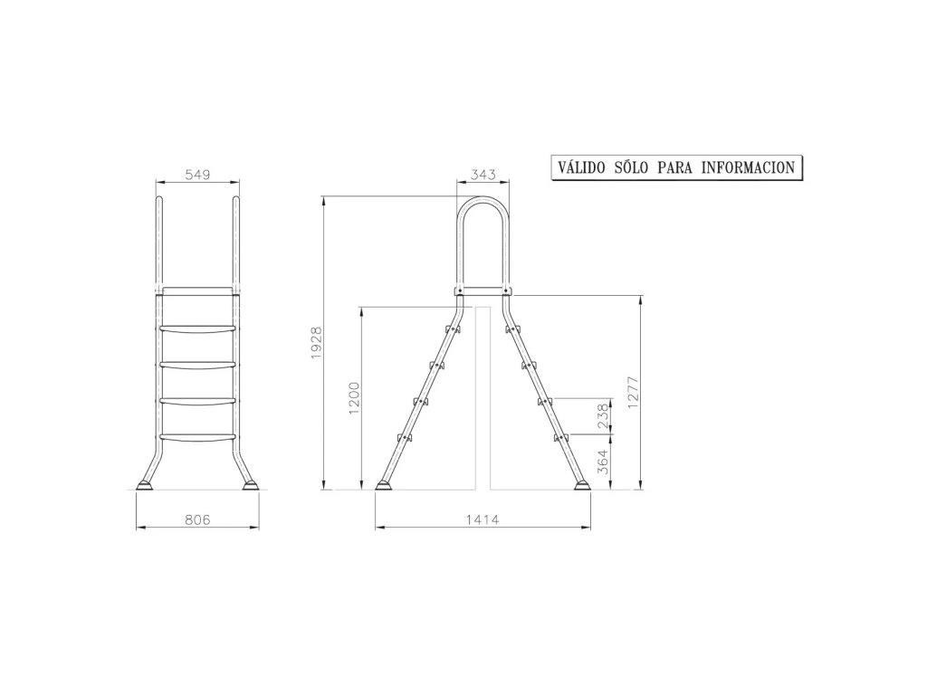 Bazénový žebřík pro bazény se stěnou až 122 cm, vyrobený z kvalitní nerezové oceli, která zajistí jeho dlouhou životnost. Žebřík má silné stabilní plastové schodnice a plošinu s protiskluzovou úpravou, udrží hmotnost až 150 kg. Žebřík má 4 stupně na vnitřní a vnější straně. Nohy žebříku jsou zakončeny koncovkami z protiskluzové gumy se stabilní podložkou, které zabraňují nechtěnému pohybu žebříku a zvyšují tak bezpečnost. Zároveň zabraňují poškození vašeho bazénu.