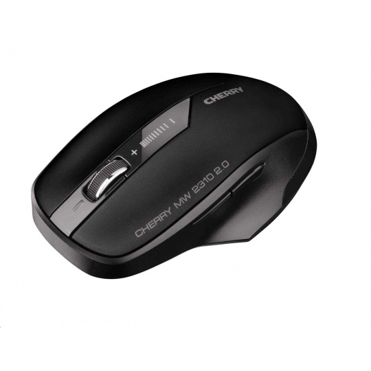 The CHERRY MW 2310 2.0 is a versatile 6-button wireless mouse with 2.4 GHz technology and an ergonomic design. Its nano USB receiver is so small that it can safely stay inside the notebook even when you're on the move – the mouse is always ready for use. The CHERRY MW 2310 2.0 has an optical sensor with 3 adjustable resolutions (1000/1600/2400 DPI). Using the DPI switch on the top of the mouse, the resolution can be selected at the touch of a button. An LED indicates the selected DPI. The technical concept makes the successor to the legendary CHERRY MW 2310 especially energy-efficient. With just one set of the supplied batteries (2 x AA), the mouse can be operated for up to 3 years before they have to be changed. The mouse has an On/Off switch on the bottom so it can be switched off completely when not in use. Advanced materials, a comfortable feel and great versatility make the CHERRY MW 2310 2.0 what it is – the CHERRY mouse for superior performance at a surprisingly low price.