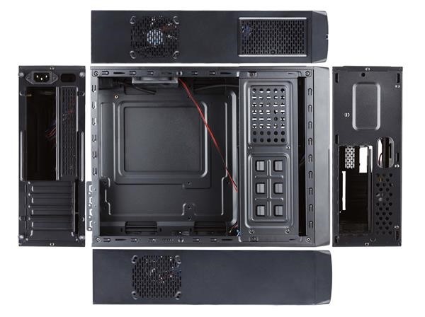 Integrovaný zdroj; Provedení skříně:Mini Tower / micro ATX; Barva skříně:Černá; Počet pozic 5.25":1; Počet pozic 3.5" (HDD):3; Počet pozic 2.5" (SSD):2.... více
