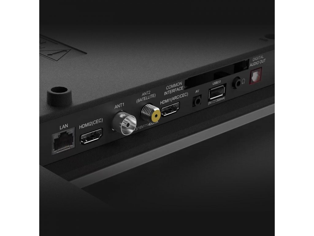| Vstupy a výstupy | AV vstup mini, CI+, sluchátkový vstup 3.5 mm, digitální audio výstup, HDMI 1.4, USB 2.0, LAN, antény RF a LNB |