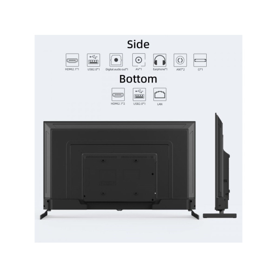 | Vstupy a výstupy | AV vstup mini, CI+, sluchátkový vstup 3.5 mm, digitální audio výstup, HDMI 2.1, USB 2.0, LAN, antény RF a LNB |