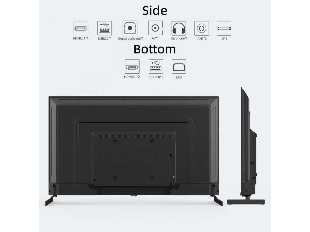 | Vstupy a výstupy | AV vstup mini, CI+, sluchátkový vstup 3.5 mm, digitální audio výstup, HDMI 2.1, USB 2.0, LAN, antény RF a LNB |