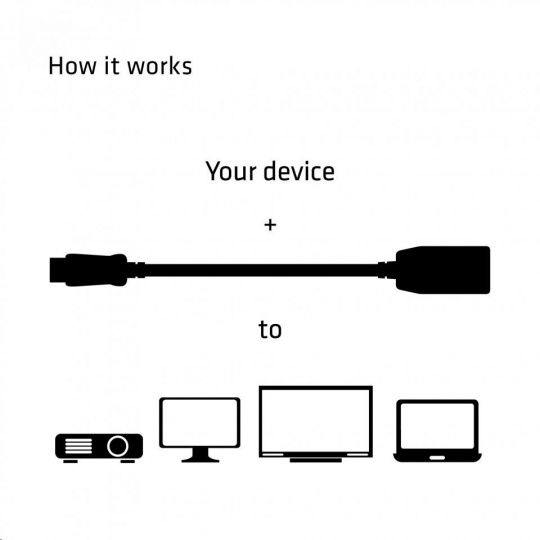 CAC-1001 Club 3D je pasivní převodník signálu HDMI ™. Adaptér DisplayPort ™ na HDMI ™ je nejjednodušší řešení pro připojení vašeho zdrojového zařízení s podporou DisplayPort ™ k televizoru s vysokým rozlišením, monitoru nebo projektoru s podporou HDMI ™.