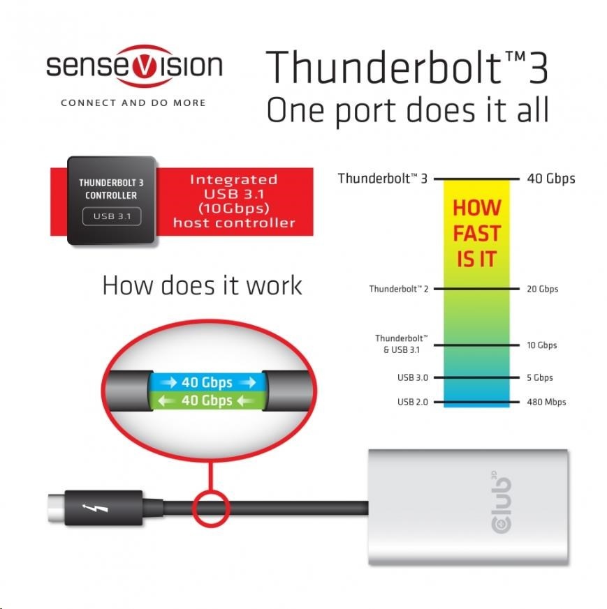 • Powered thru Thunderbolt™ 3, 15Watt, no external power needed