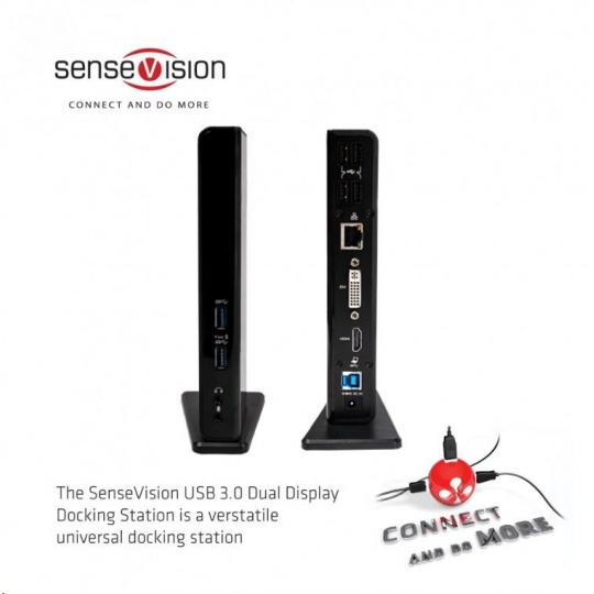 Dokovací stanice SenseVision USB 3.0 Dual Display je dokonalé univerzální zařízení, které vám umožní rozšířit výstupy vašeho notebooku nebo ultrabooku, takže jej můžete používat jako tradiční stolní počítač.