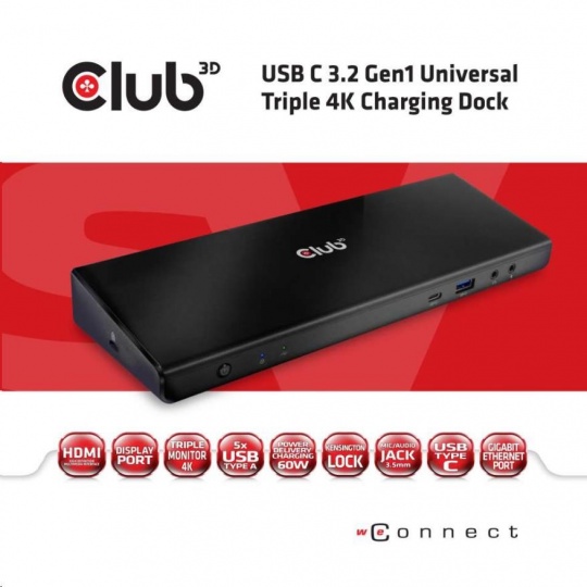 | Package Contents | Club 3D CSV-1562 USB C 3.2 Gen1 Universal Triple 4K Charging Dock External Power Supply 100-240V AC, 135W, Power Cord USB-C cable Installation CD Driver |