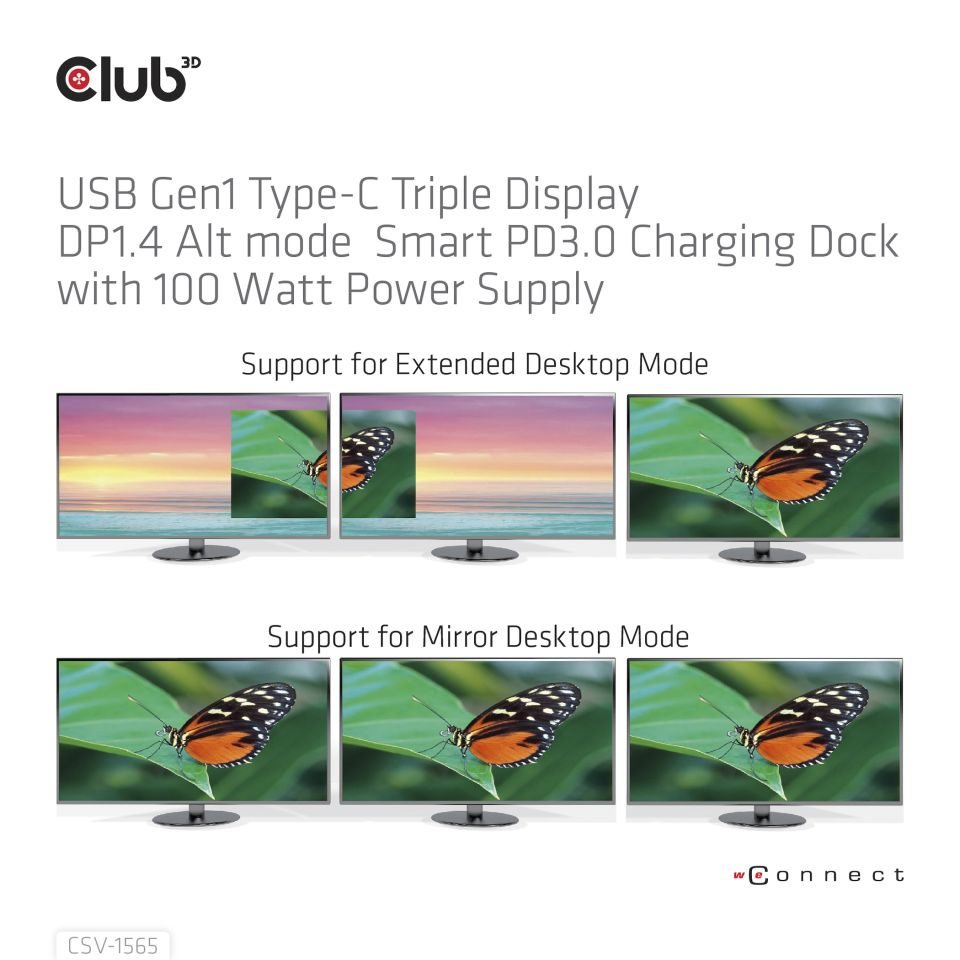 Club-3D CSV-1565 USB Gen1 Type-C Triple Display DP1.4 Alt mode Smart PD3.0 Charging Dock je integrované řešení kombinující video, data, napájení, Ethernet a zvuk, zejména pro časté cestovatele