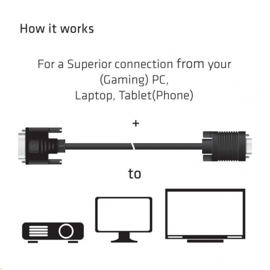 The Club 3D CAC-1243 is a DVI-A Male to VGA Male Cable. This cable is Unidirectional. This CAC-1243 Cable is the easiest solution for connecting your VGA Monitor, Projector or Television to the DVI-A output of your PC / Notebook / Game Console.