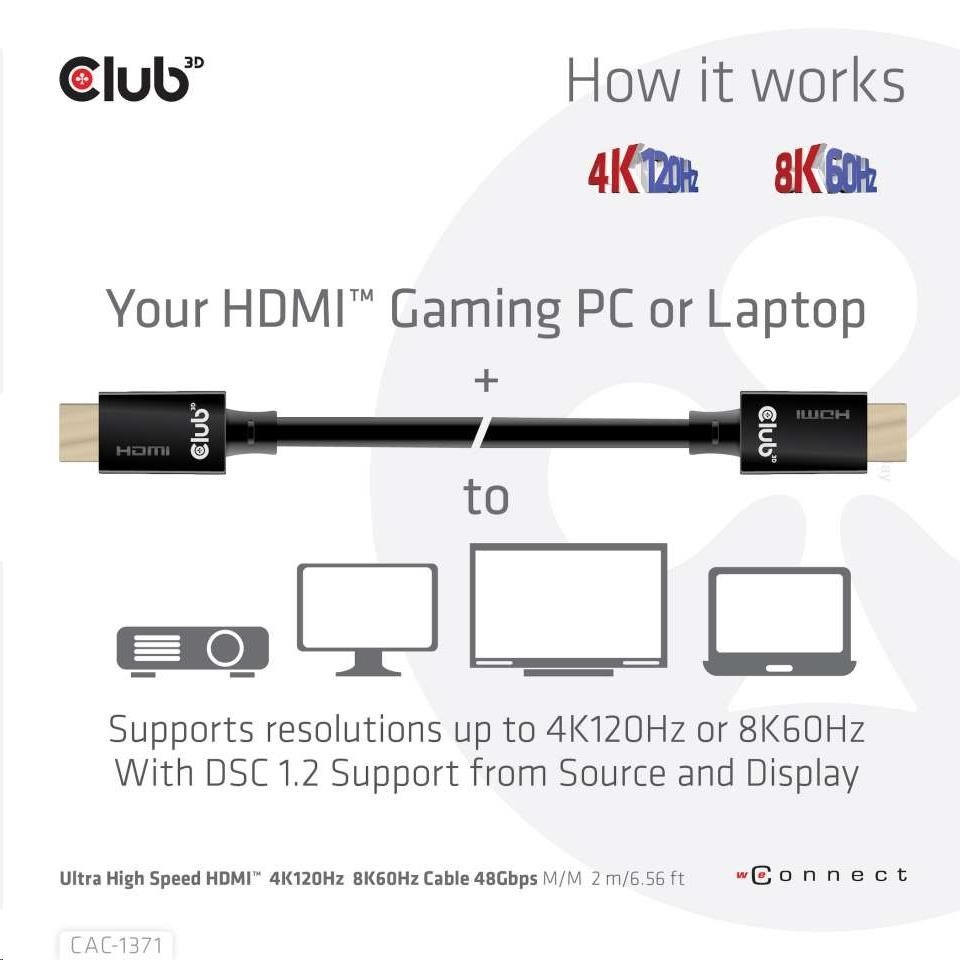 Club3D Kabel Ultra Rychlý HDMI™ Certifikovaný 4K 8K60Hz 48Gbps (M/M), 1m, 30 AWG