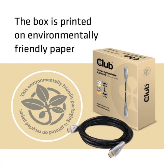 Kabel 3D Club HDMI ™ 2.0 High Speed 4K UHD umožňuje propojení vašeho herního PC nebo notebooku s technologií HDMI ™ 2.0 k UHD monitoru nebo k jinému zařízení s podporou rozhraní HDMI ™ 2.0. Plně podporuje specifikaci ‘HDMI High Speed s rozhraním Ethernet‘, která zajišťuje podporu videa až ve 4K UHD 3840x2160p při 60Hz, včetně audio a datových toky. Zahrnuje vyhrazený datový kanál umožňující vysokorychlostní síťové připojení až do rychlosti 100 Mb/s.