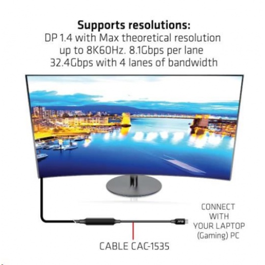 The Club 3D CAC-1535 is an USB Type C to USB Type C Bi-directional Active Cable with a Re-timer chipset for enhancing Video, Data and Power that reaches up to 5 meters / 16.40ft . For video its compatible with DP1.4 standards with a theoretical resolution of up to 8K@60Hz. For data it is compatible with USB3.2 Gen 2 with a maximum of 10Gbps of data transmission and for power it is capable of delivering a max of 60W (20V/3A) PD Charging.