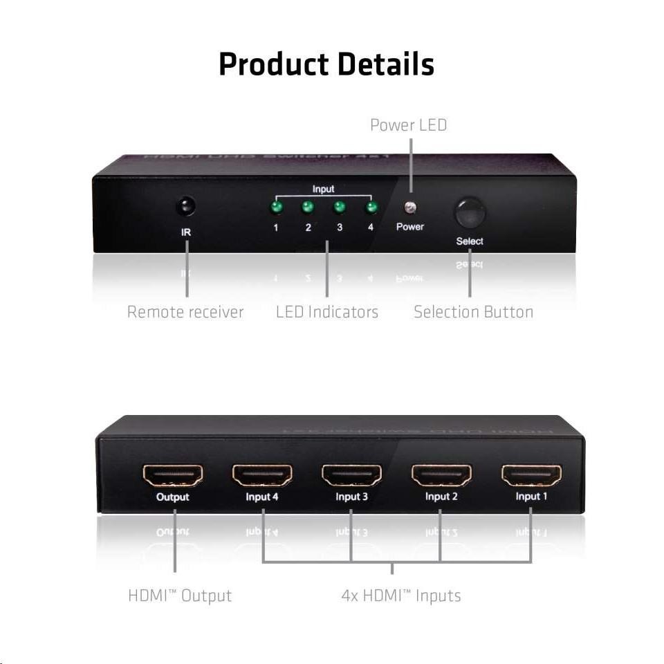 Club3D Video switch 4:1 HDMI 2.0 4K60Hz UHD, 4 porty