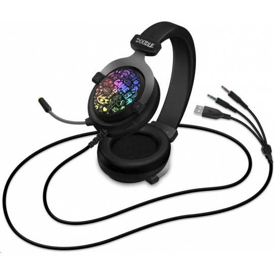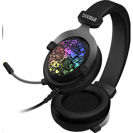 - RGB podsvícení obou mušlí s gravírovaným motivem herní řady DOODLE