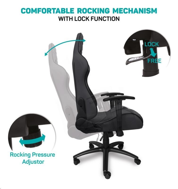 Vyniká luxusním zpracováním, moderním ergonomickým designem a velmi stabilní konstrukcí. Mnohačetná nastavení vyhoví každé postavě. Design byl speciálně navržen pro dlouhodobé sezení a umožňuje i běžnou práci doma i v kanceláři. Ideální pro mnohahodinové hraní bez kompromisů.