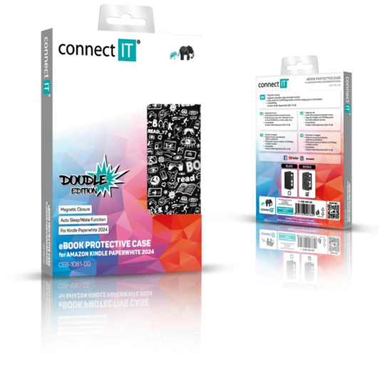 CONNECT IT Pouzdro pro Amazon Kindle Paperwhite 2024, doodle černá