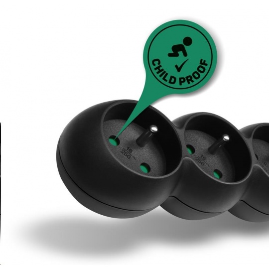 - Dětská ochrana všech zásuvek (zásuvky jsou přístupné pouze v případě zasunutí obou vidlic najednou, nelze tedy zasunout jednotlivě např. pouze šroubovák nebo pletací jehlici)