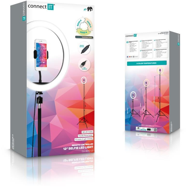 CONNECT IT Selfie12Ring kruhové 12" LED světlo + stativ 2,1 m