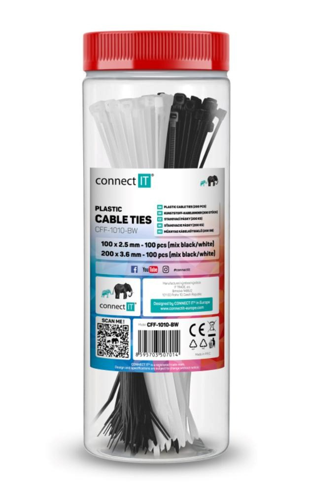 CONNECT IT Stahovací pásky na kabely ZipTie, Černá/Bílá