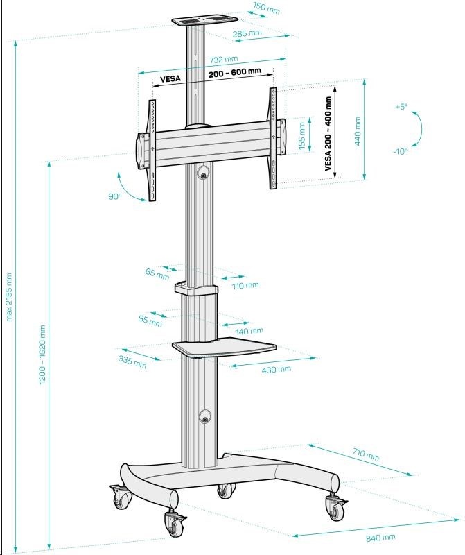 Rozměry v nejvyšší poloze (š x h x v): 84 × 71 × 212 cm