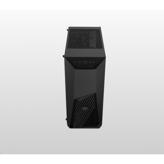 Základem nového MasterBoxu K501L je hraní her. Osvětlený ventilátor na pozadí šikmého větrání předního panelu vypovídá o jeho soutěživé stránce.