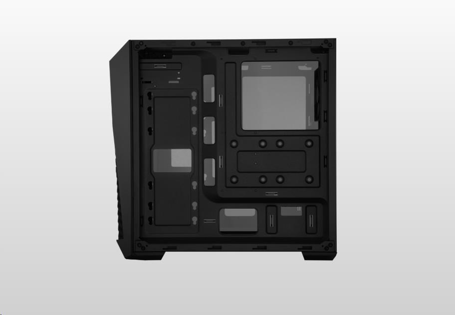 Základem nového MasterBoxu K501L je hraní her. Osvětlený ventilátor na pozadí šikmého větrání předního panelu vypovídá o jeho soutěživé stránce.
