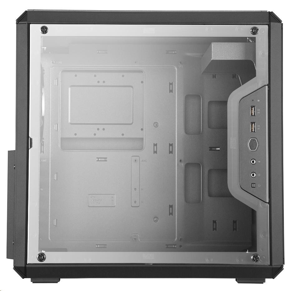 MasterBox Q500L podporuje standardní základní desku ATX a napájecí zdroj ve velmi kompaktním uspořádání. Díky stejným vnějším rozměrům jako MasterBox Q300L byla podpora standardní základní desky ATX umožněna maximálním využitím vnitřního prostoru.